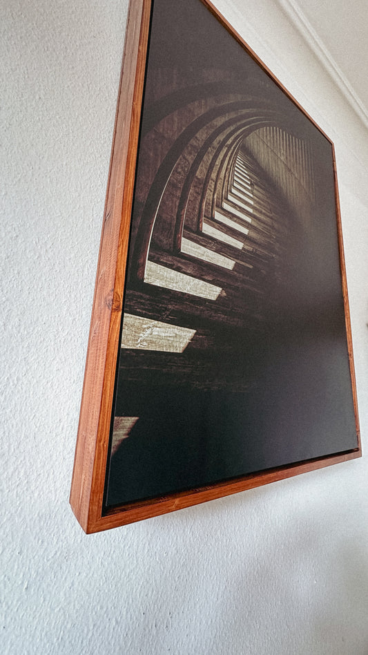 For select custom prints, I go a step further. Since 2020, I've been creating my own frames – from special materials, with newly developed surfaces, and in combination with experimental printing techniques. Light is a conscious consideration: reflections, depth, and subtle plays of light change the image depending on the perspective and time of day.